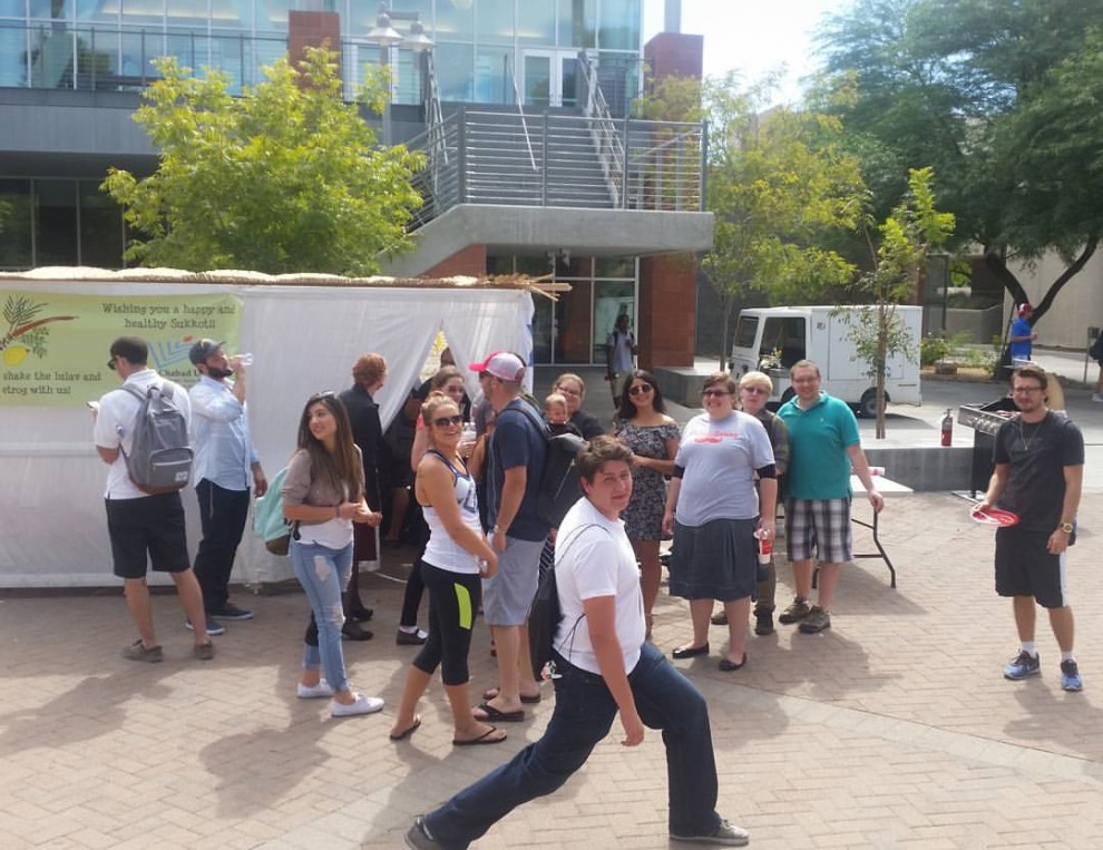 The Hillel Jewish Student Center of UNLV and Chabad of UNLV celebrated Sukkot on the UNLV Campus outside of the student union with students, faculty, and the community on Wednesday, Sep 30. The event started early in the morning with the construction of the Sukkah, and was followed with a Kosher BBQ for the Jewish community of UNLV.