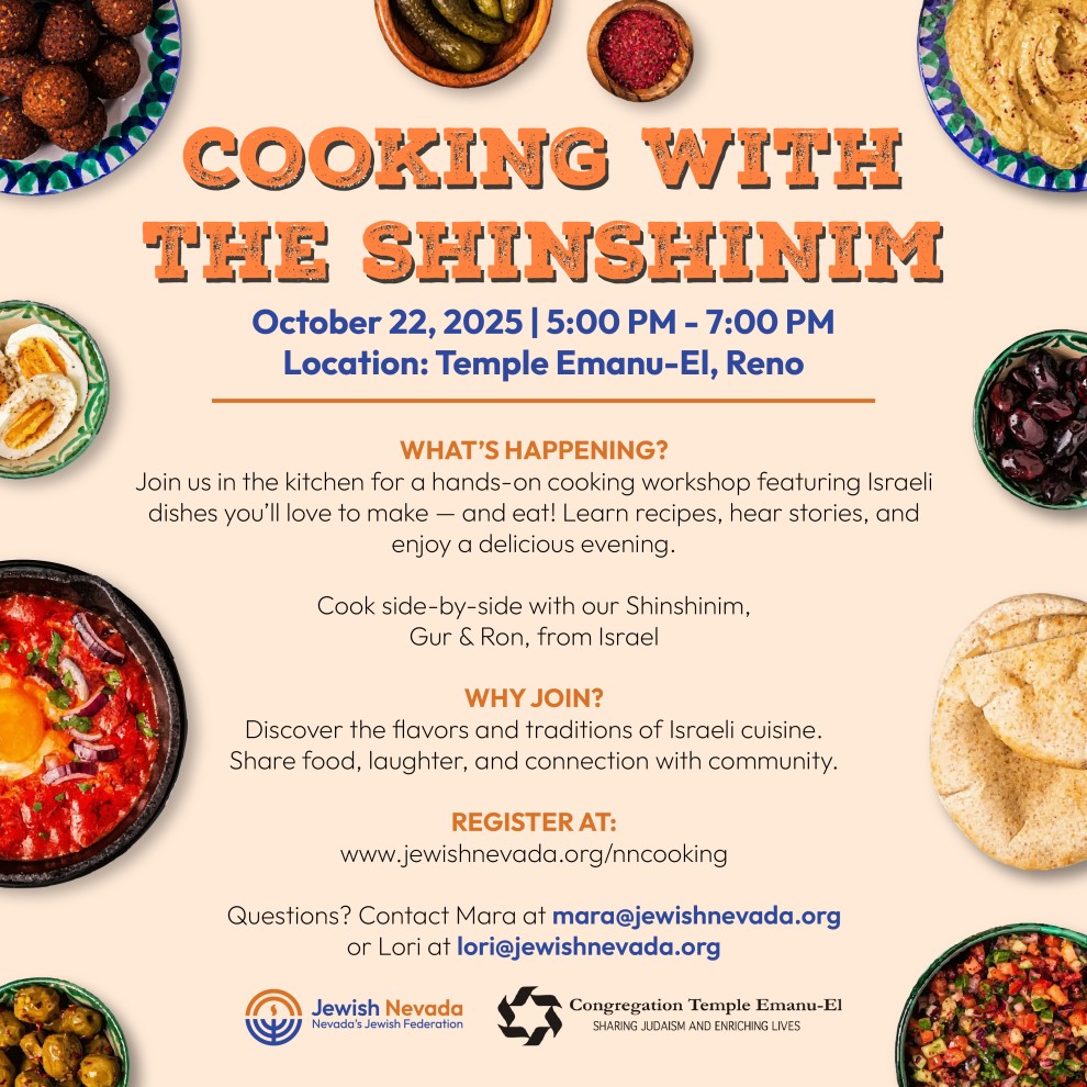 Jewish Nevada & Temple Emanu-El invite you to a special cooking experience with our Israeli teen ambassador, Gur!