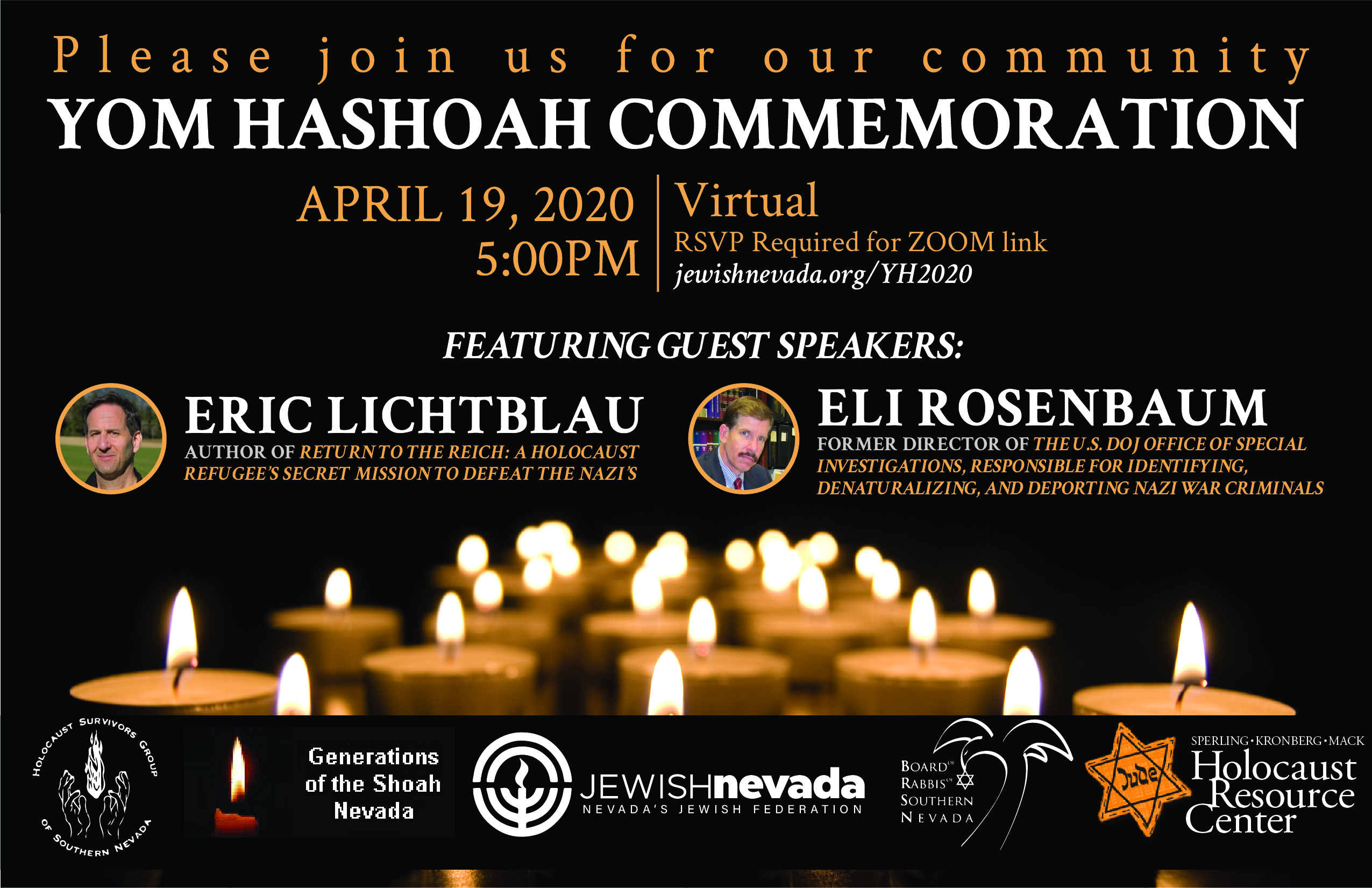 Please join us for our community-wide Yom Hashoah commemoration featuring guest speakers Eric Lichtblau and Eli Rosenbaum. RSVP required in advance - CLICK BELOW