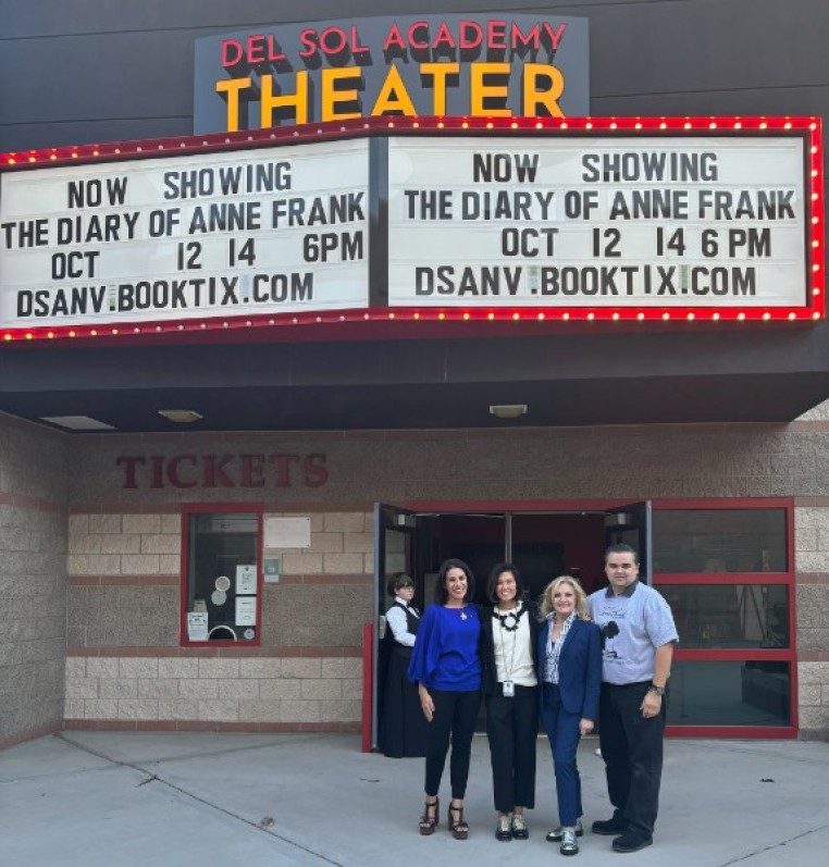Del Sol Academy of the Performing Arts production of The Diary of Anne Frank, a collaboration between Jewish Nevada, Nevada Center for Humanity, and Del Sol Academy. From left to right: Stefanie Tuzman, Susan Huff, Heidi Straus, Dino Taronis.