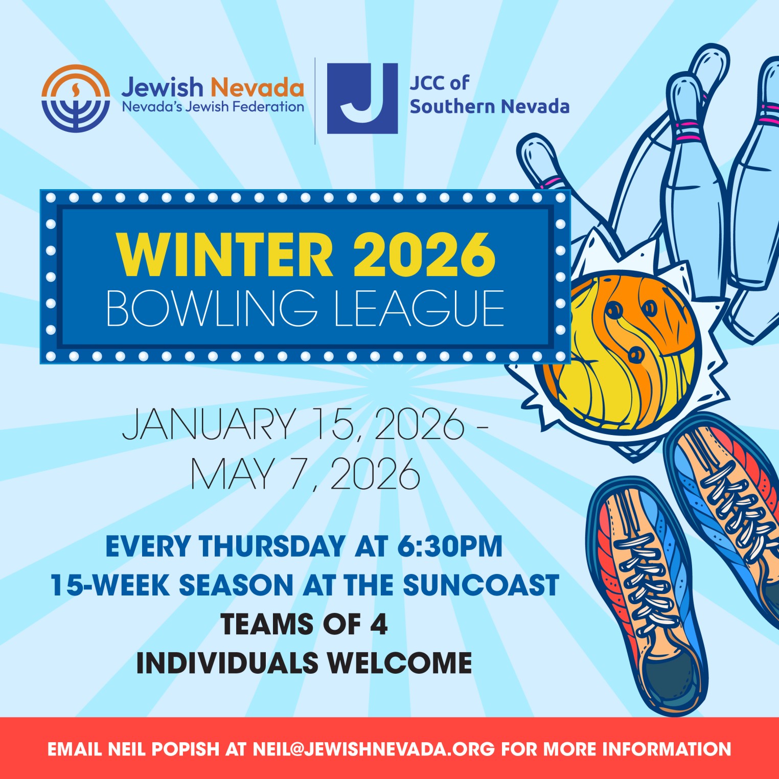 JCC Members are FREE (JCC Members e-mail neil@jewishnevada.org for coupon code), Guests: $10