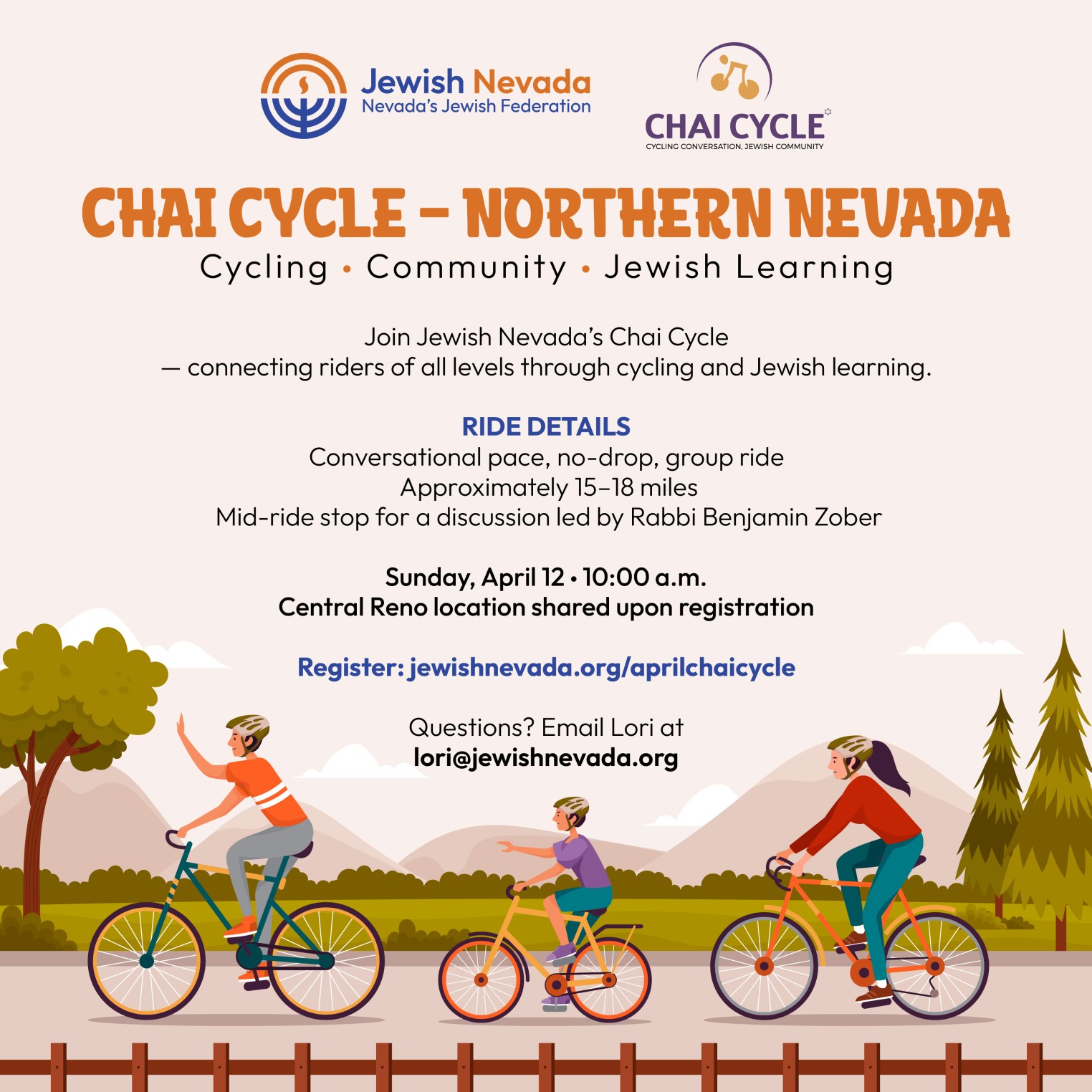 Join Jewish Nevada’s Chai Cycle for our first group ride — a welcoming cycling community for riders of all levels who e...