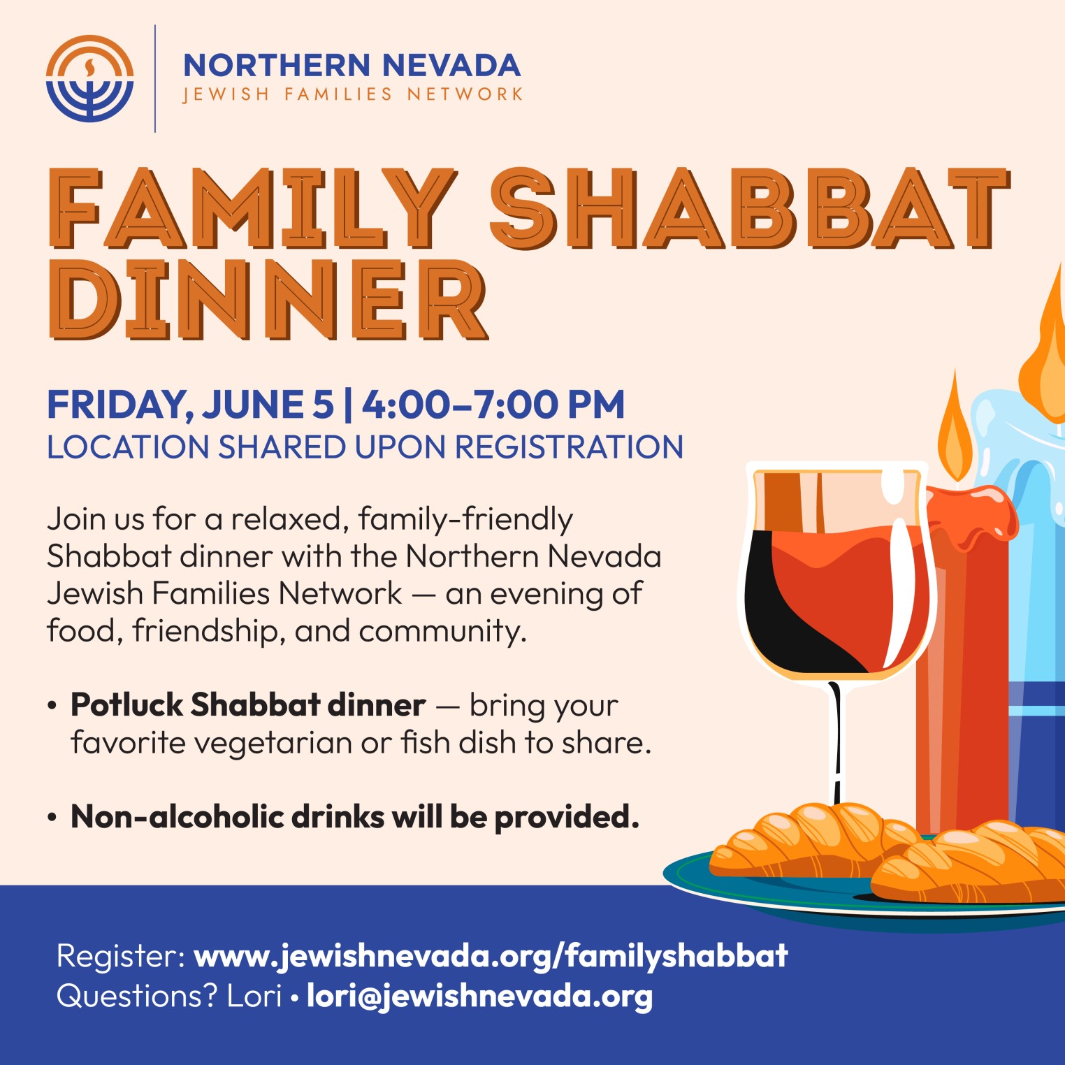 Join us for a relaxed, family-friendly potluck Shabbat dinner with...