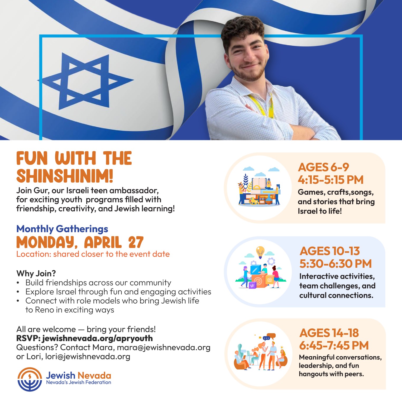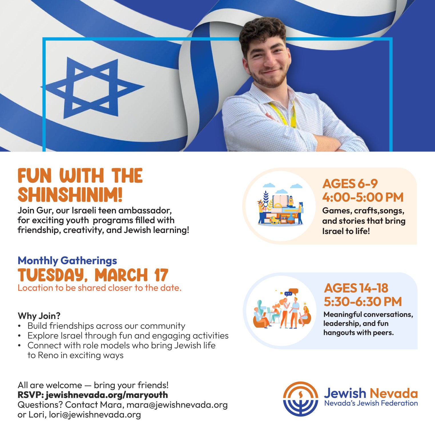 Join Gur, our Israeli teen ambassador, for exciting youth programs filled with friendship, creativity, and Jewish learning!